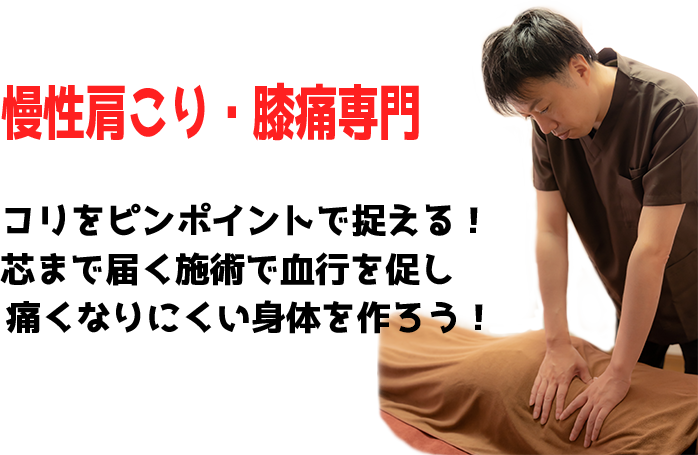 私の経験則では、施術した日に楽になったり、お風呂に入った後は身体の痛みが軽減する、そういった方はもみほぐしで良くなるタイプだと考えています。
